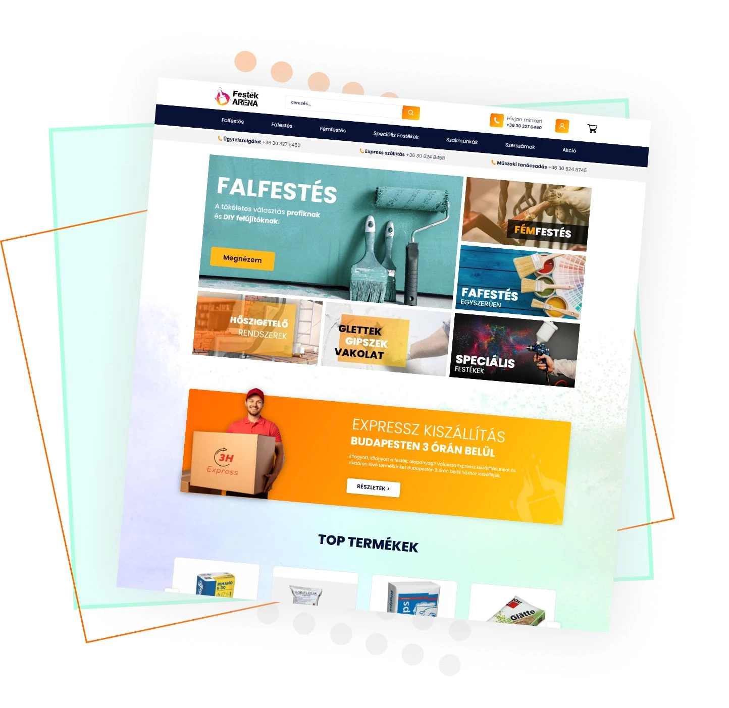 Külön figyelmet és egy külön modult szenteltünk a webshop egyik fő előnyének, a Budapesti Expressz házhozszállításnak, mely egy egyedi fejlesztésünknek köszönhetően azon termékek termékoldalnál is visszaköszön, amelyekre ez a szolgáltatás igénybe vehető. Az oldal designjánál mind a nyitóoldalon, mind a termékoldalakon használtuk olyan grafikai elemeket (színátmentek, festékhúzás, termékoldali színválasztás ecsettel) amik híven türközik az érzést, hogy egy professzionális festékboltban vagyunk. A felhasználói élményt animációk használatával fokoztuk.